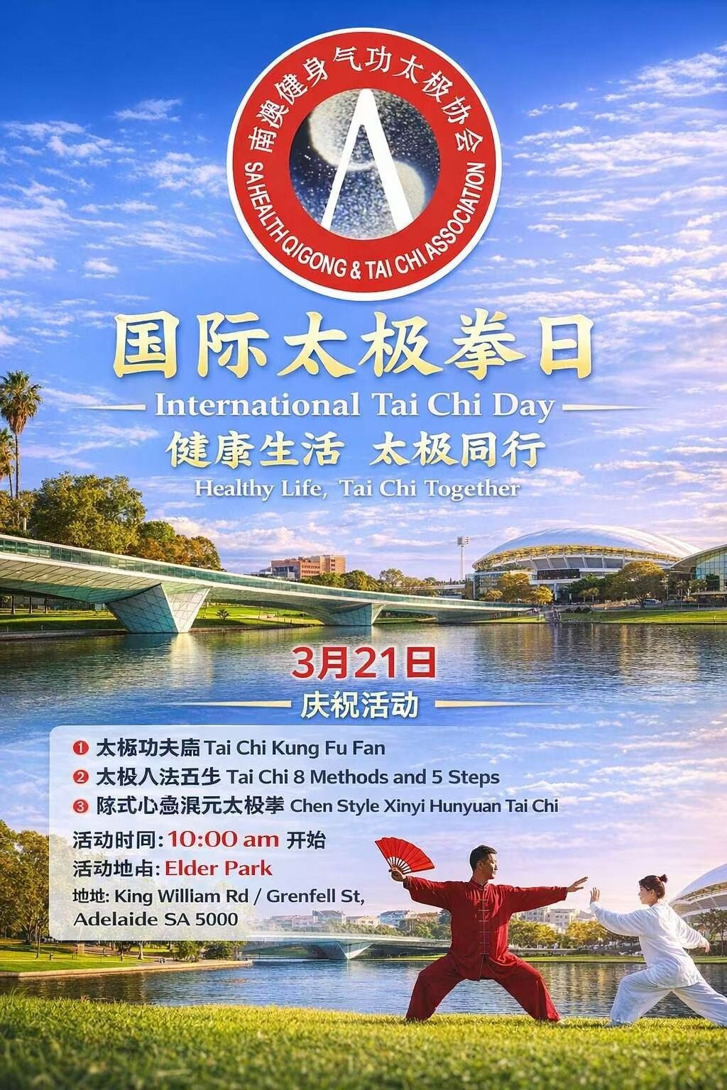 The South Australia Health Qigong ang Tai Chi Association was founded in September 2018 in Adelaide by a group of Qigong and Tai Chi enthusiasts. As a non-profit organisation, we are dedicated to promoting traditional Chinese culture and providing a platform for practitioners to learn, practise, and enhance their physical and mental wellbeing.